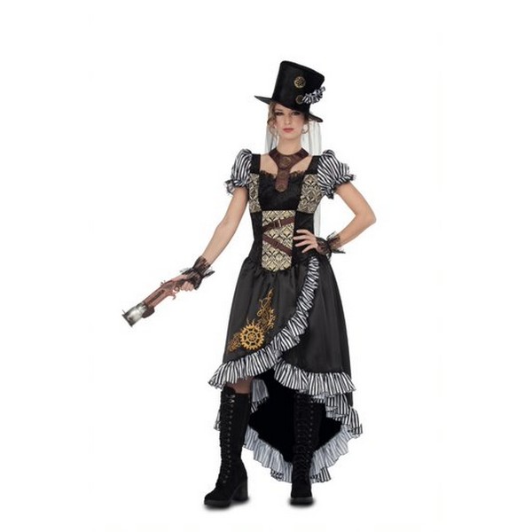 El disfraz de lady steampunk para mujer incluye vestido, sombrero, gargantilla y muñequeras. La mejor alternativa para tu fiesta inspirada en la revolución industrial en Carnaval.