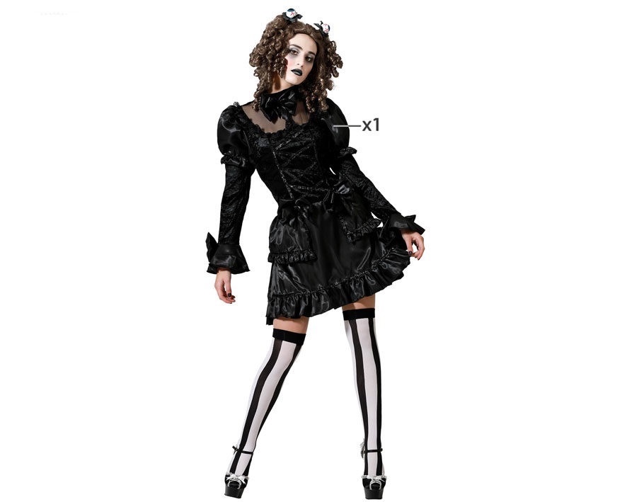 El disfraz de Lolita negro para mujer incluye el vestido. Perfecto en fiestas de terror como Halloween.