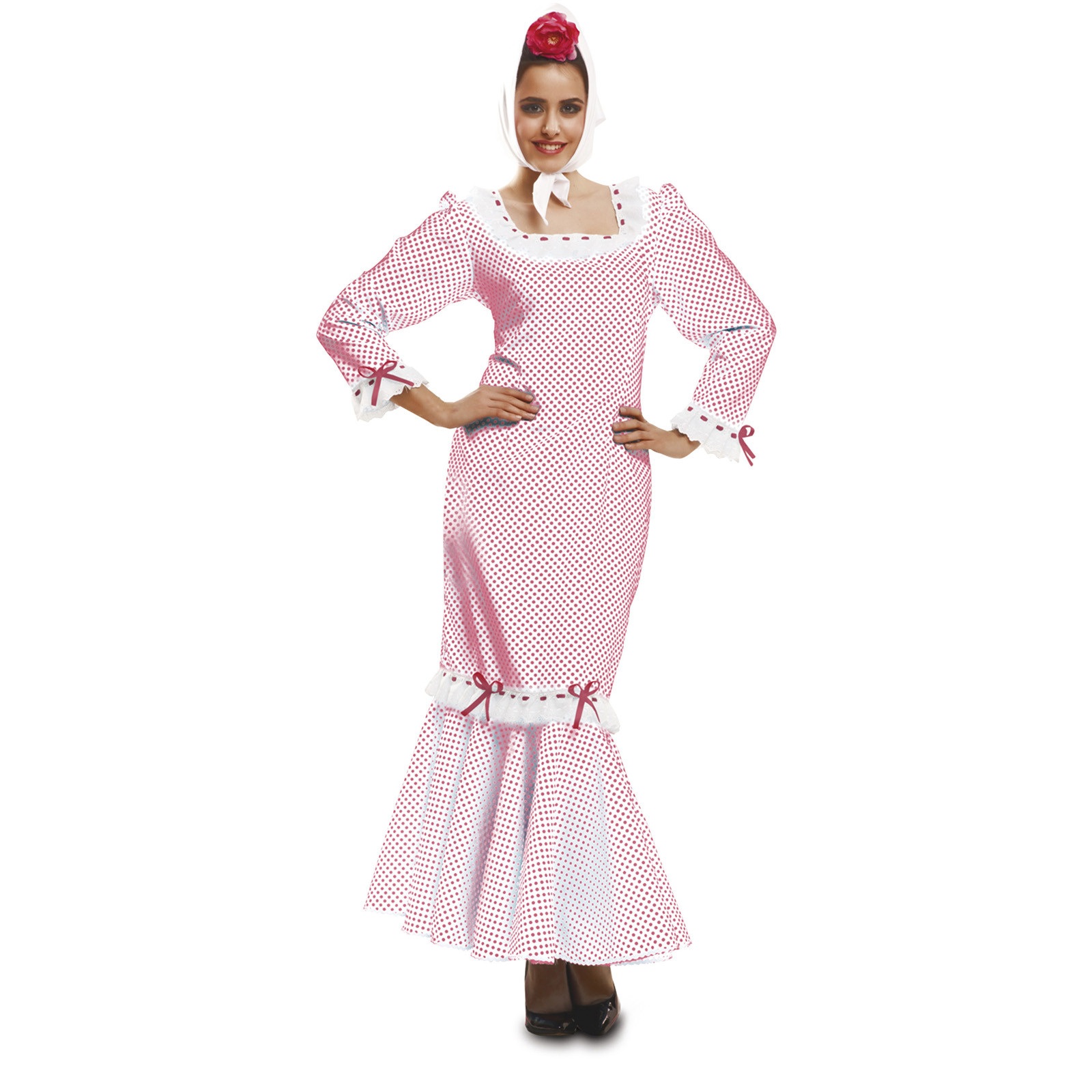El disfraz de madrileña blanco para mujer incluye vestido, pañuelo cabeza, bolsito y mantón. Vístete con este traje de Madrileña blanco o Chulapa y serás la más castiza de todas las Fiestas de San Isidro .