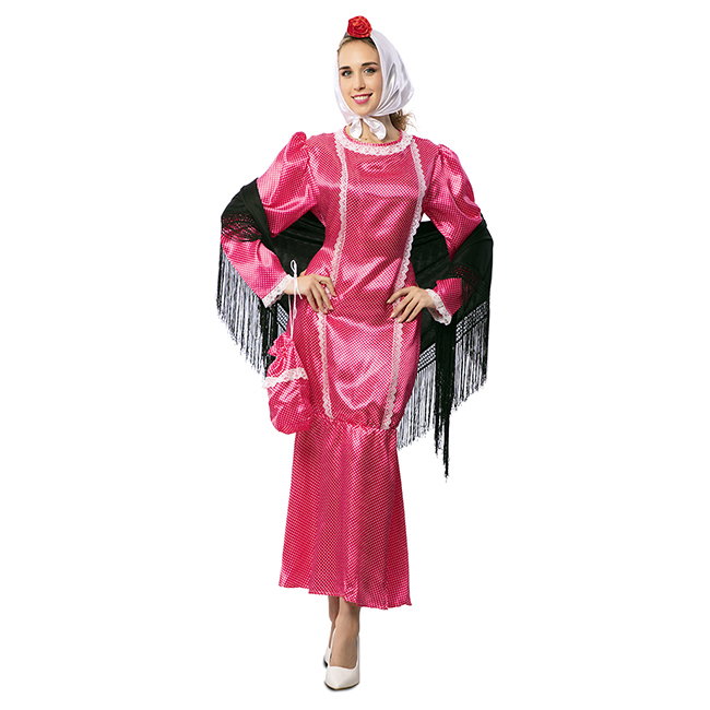 El disfraz de madrileña para mujer incluye Vestido, pañuelo y bolsa.