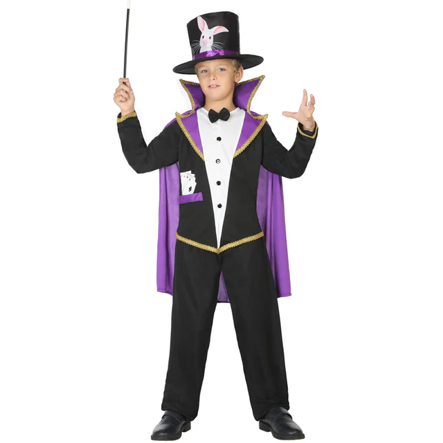 Disfraz talla infantil niño ideal para Carnaval. Cotenido del pack: 1 pantalon,1 casaca,1 capa 1 gorro. Original disfraz mago ilusionista pensado para infantils. El género de este divertido disfraz niño aunque no somos quién para decir quién debe o puede usarlo. Este original y barato disfraz de Carnaval de temática fantasía magia es un traje que te convertirá en el centro de cualquier fiesta de disfraces o evento gracias a la gran calidad de sus tejidos, sus numerosos detalles y sus ornamentaciones y filigranas.Este disfraz de fiesta se compone de 4 piezas: 1 pantalon,1 casaca,1 capa 1 gorro. No te conformes con ese disfraz casero ridículo que tendrás que hacer a mano y llévate un gran conjunto que le encantará a todo el mundo y los dejará sin palabras.