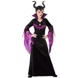 El disfraz de maléfica para niña incluye el vestido ( no incluye cuernos ). Este modelo nos recuerda al personaje de la reina malvada de nuestros cuentos infantiles de fantasía.