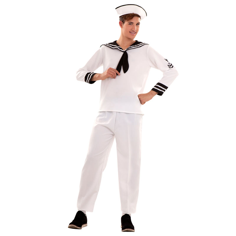 El disfraz de marinero incluye camisa, pantalón y gorra. El disfraz ideal para grupos y comparsas, para poder navegar  por el centro de la fiesta. Típico disfraz de marinero para hombre que combina los colores blanco y azul oscuro de una manera muy bonita.