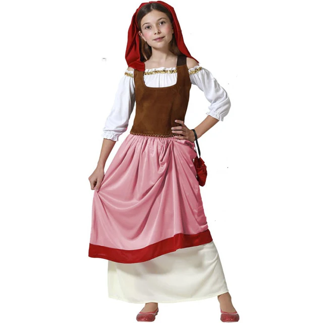 Disfraz talla infantil niña ideal para Carnaval. Contenido del pack: un chaleco, una camiseta, un velo, una falda y una bolsa. Este disfraz es ideal para que la niña se introduzca en la Edad Media para su fiesta de una forma llamativa y eficaz, a pesar de que el traje se compone de cuatro piezas, resulta muy cómodo de quitar y poner. Sus colores neutros hacen que sea una fantástica opción para cualquier evento, desde Carnavales, disfraces de época, teatro hasta Navidades. Obtendrá un aspecto tradicional y elegante de tabernera de la Edad Media. Si le gustan los disfraces sencillos o no está muy acostumbrada a disfrazarse, esta opción es genial para ella!