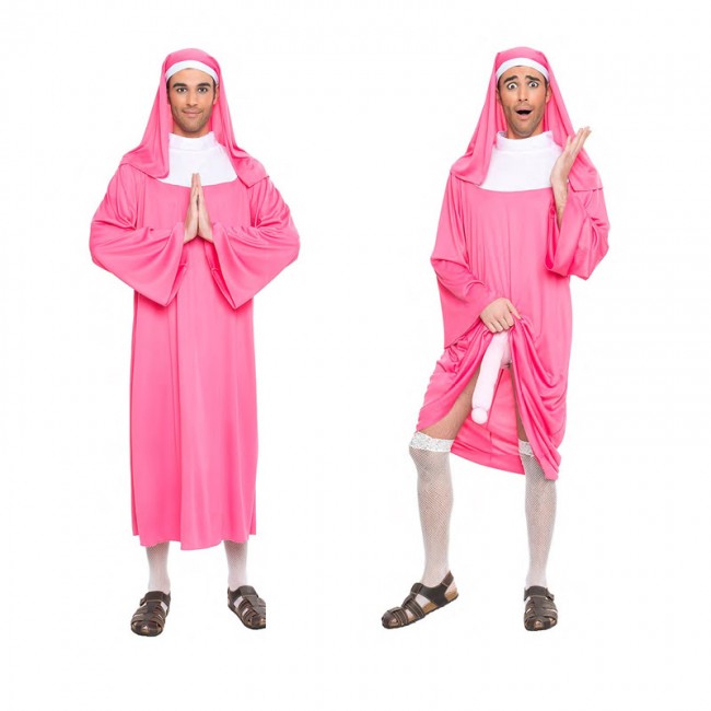 El disfraz de monja rosa incluye túnica, tocado y calcetines. Divertido disfraz para hacer reir a todos .