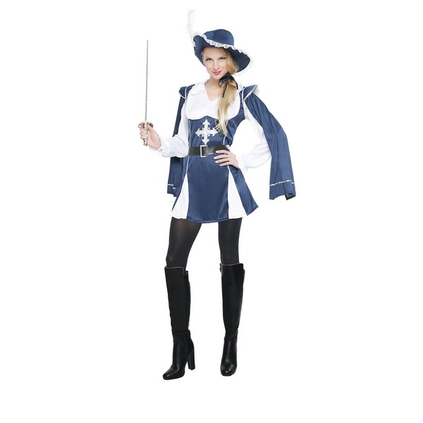 El disfraz de mosquetera para mujer incluye vestido, cinturón y sombrero. Demuestra a Athos, Porthos y Aramis la destreza con tu espada y sirve al rey Luis XIII con este disfraz de mosquetera valiente para mujer.