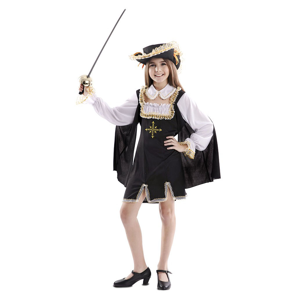 El disfraz de mosquetera para niña incluye : Vestido, sombrero, cuello. Serás parte de la guardia real defendiendo a la corte con este elegante disfraz de mosquetera niña.