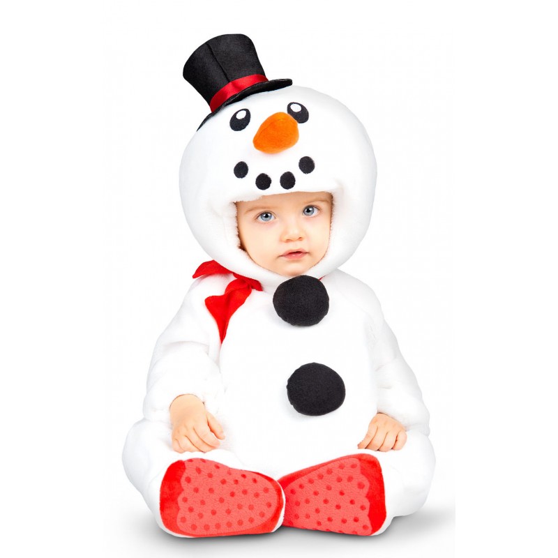 El disfraz de muñeco de nieve para bebé incluye Gorro, mono y patucos. Disfraz de Muñeco Nieve bebé para Navidad y fiestas de disfraces.