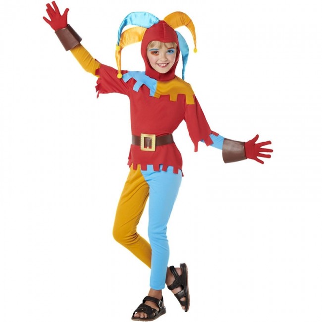 El disfraz de niña bufón arlequín de colores incluye Capucha, Túnica, Mangas, Brazaletes, Pantalones, Cinturón. Con el disfraz de bufón medieval infantil tendrás el traje más original y simpático para disfrazar a tu hijo como estos cómicos y payasos de la Edad Media que se encargaban de hacer reír al rey.
