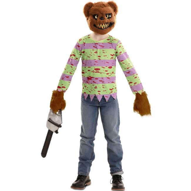 El disfraz de oso asesino infantil incluye camisa, máscara y guantes.