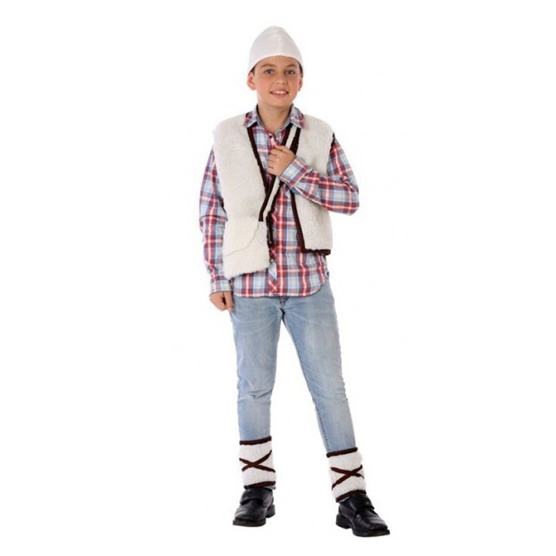 El disfraz de pastor para niño incluye gorro, chaleco, bolsito y dos polainas. Este disfraz resultará económico y cómodo para niños y niñas en funciones escolares navideñas.