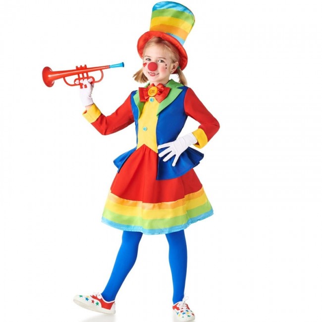 El disfraz de payasa micolor para niña incluye Chaqueta, falda, sombrero, pajarita. Con el disfraz de payasa multicolor para niña tendrás el traje perfecto para disfrazarte como una simpática y colorida payasa y triunfarás en tu fiesta de disfraces.