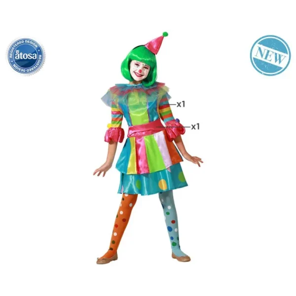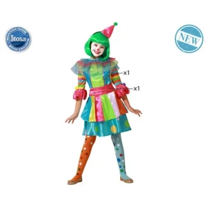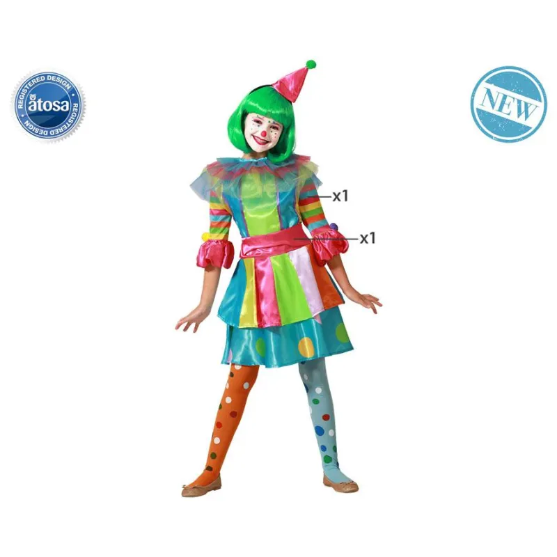 Disfraz para niña talla infantil. Contenido: vestido , cinturón. No incluye: peluca, gorro. Disfraz de Payasa multicolor de niña para carnaval y fiestas temáticas. En nuestra tienda encontrarás los disfraces más originales y divertidos de: payaso, arlequín, domador,… Las risas están aseguradas en el circo, un mundo lleno de color y fantasía.