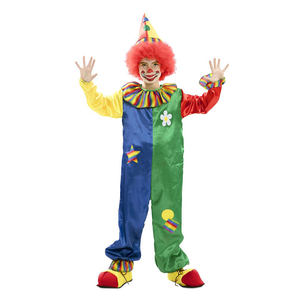 El disfraz de payasito mulitcolor para niño incluye : Mono, sombrero. Con este disfraz de payaso para niño podras disfrazar a las mas peques de una forma original y divertida.