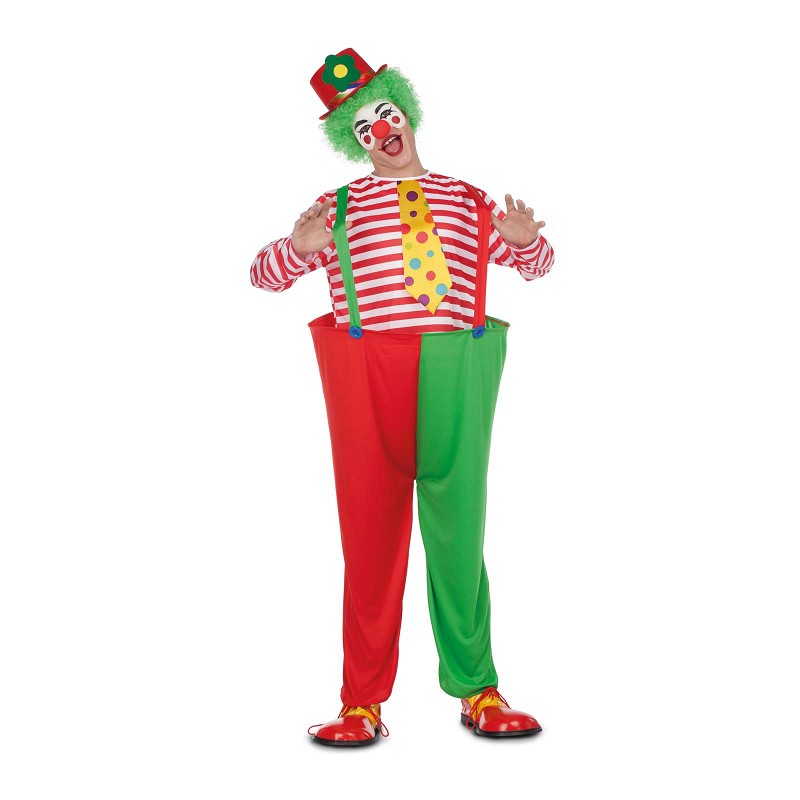 El disfraz de payaso con aro para adulto incluye Camiseta con corbata, pantalones con tirantes y aro. Pensado para adultos, tenemos este graciosísimo y divertidísimo disfraz de payaso. El disfraz de payaso aro es la opción perfecta para que te diviertas con un look colorido y alegre en fiestas temáticas, carnaval o cualquier ocasión especial. Con un diseño clásico y llamativo, este disfraz permite transformarse en un personaje lleno de diversión y alegría.