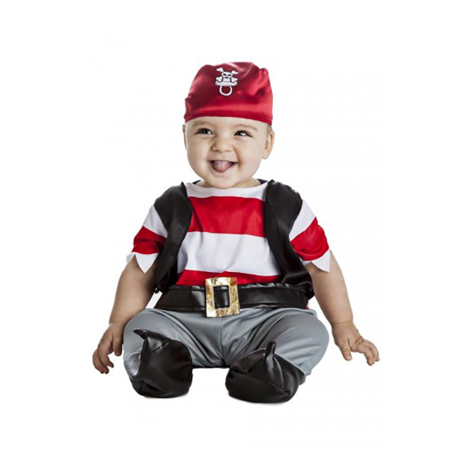 El disfraz de pirata para bebé incluye mono con chaleco y bandana. Viste tu disfraz pirata y sube a bordo del Adventure Gallery para surcar los 7 mares para buscar tesoros perdidos.