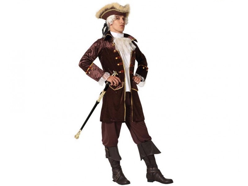 El disfraz de pirata de época para hombre incluye sombrero, chaqueta y pantalón. Traje muy elegante de pirata para hombre con el que formarás una pareja estupenda ya que tenemos el mismo modelo para mujer.