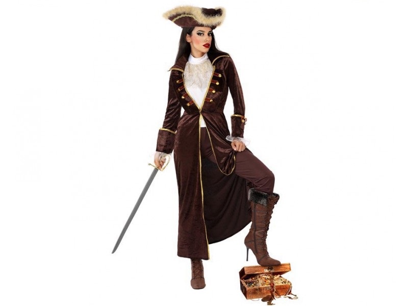 El disfraz de pirata de época para mujer incluye sombrero, chaqueta y pantalón. Asalta los barcos piratas con tu disfraz pirata mujer para Carnaval o Fiestas Temáticas. Los piratas son un acierto seguro para disfrazarte en cualquier fiesta y si lo haces en grupo o con tu pareja será doblemente divertido.
