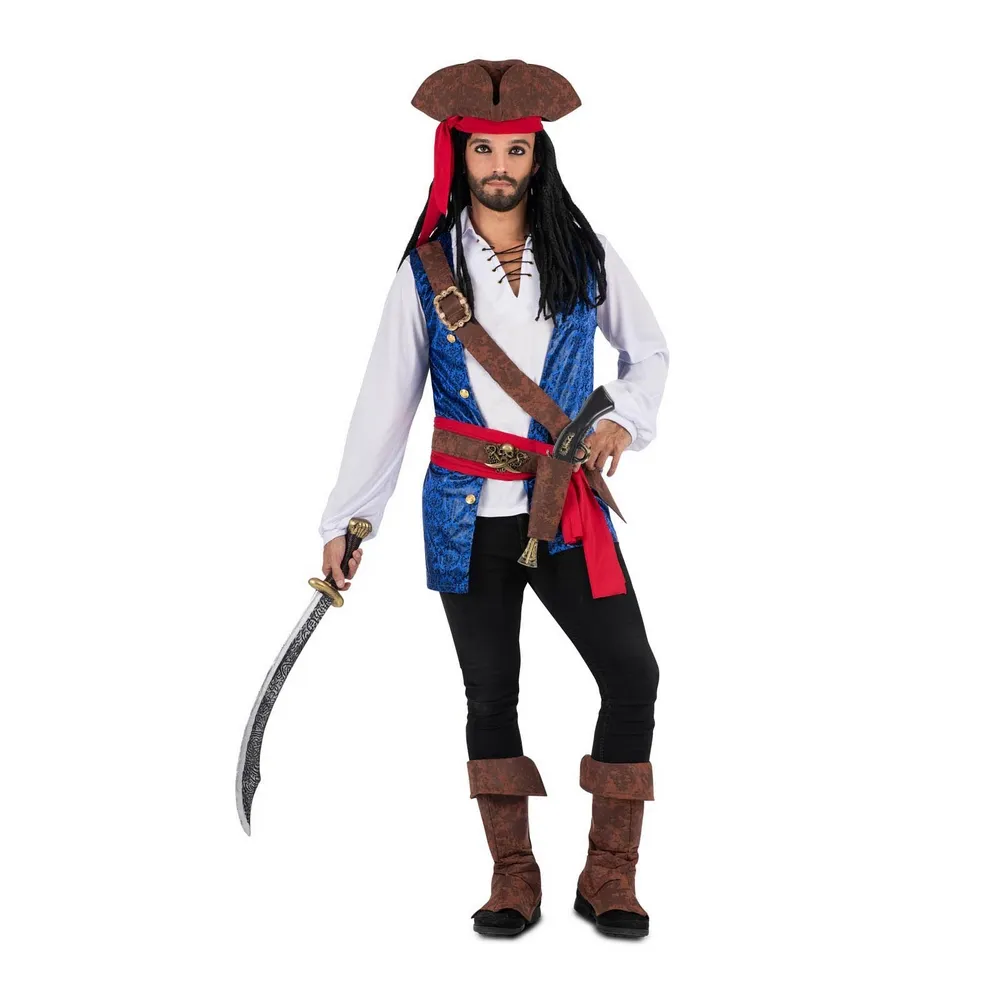 El exclusivo disfraz de Capitán Pirata Jack Sparrow para hombres contiene: sombrero, chaleco, camisa, cinturón, cartuchera, fajín y cubrebotas y ten en cuenta que no incluye pantalón. Surca los mares y conquista la próxima fiesta de disfraces con el Disfraz de Capitán Pirata Jack Sparrow para hombre, inspirado en el espíritu libre de los grandes corsarios. Este atuendo es la excusa perfecta para dejar atrás lo cotidiano y embarcarte en una noche de aventuras, risas y miradas cómplices.