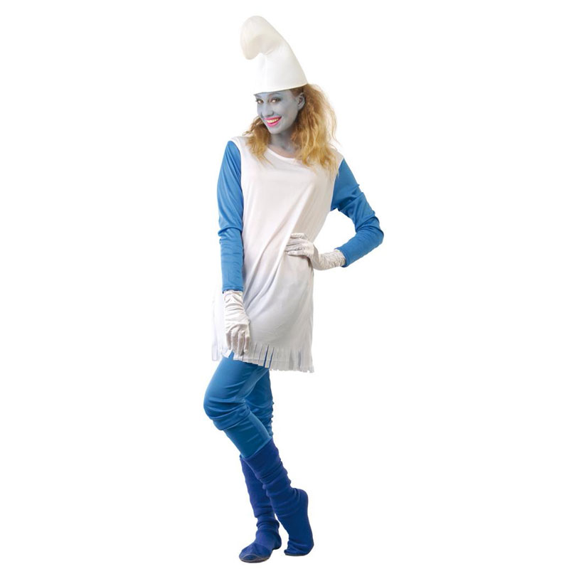 El disfraz de pitufa para mujer incluye camisa, pantalón y gorro. Disfraz para formar parte de toda la familia de los pitufos, (pitufo, pitufa Papa pitufo).
