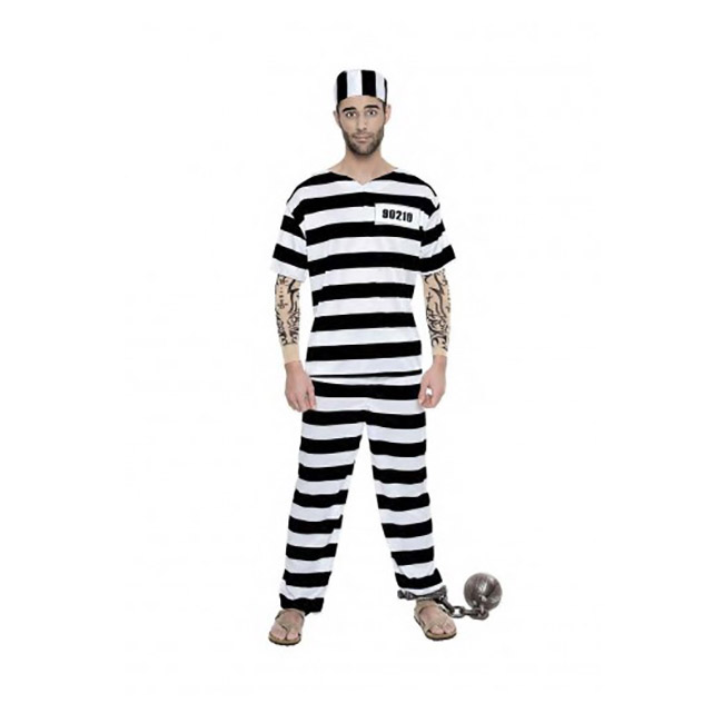 El disfraz de preso para hombre incluye camisa, pantalón, gorro y mangas tatuadas. Un modelo muy popular que no podrá faltar en cualquier fiesta de disfraces, además en nuestra tienda puedes encontrar la bola y grilletes de preso para completar el look.