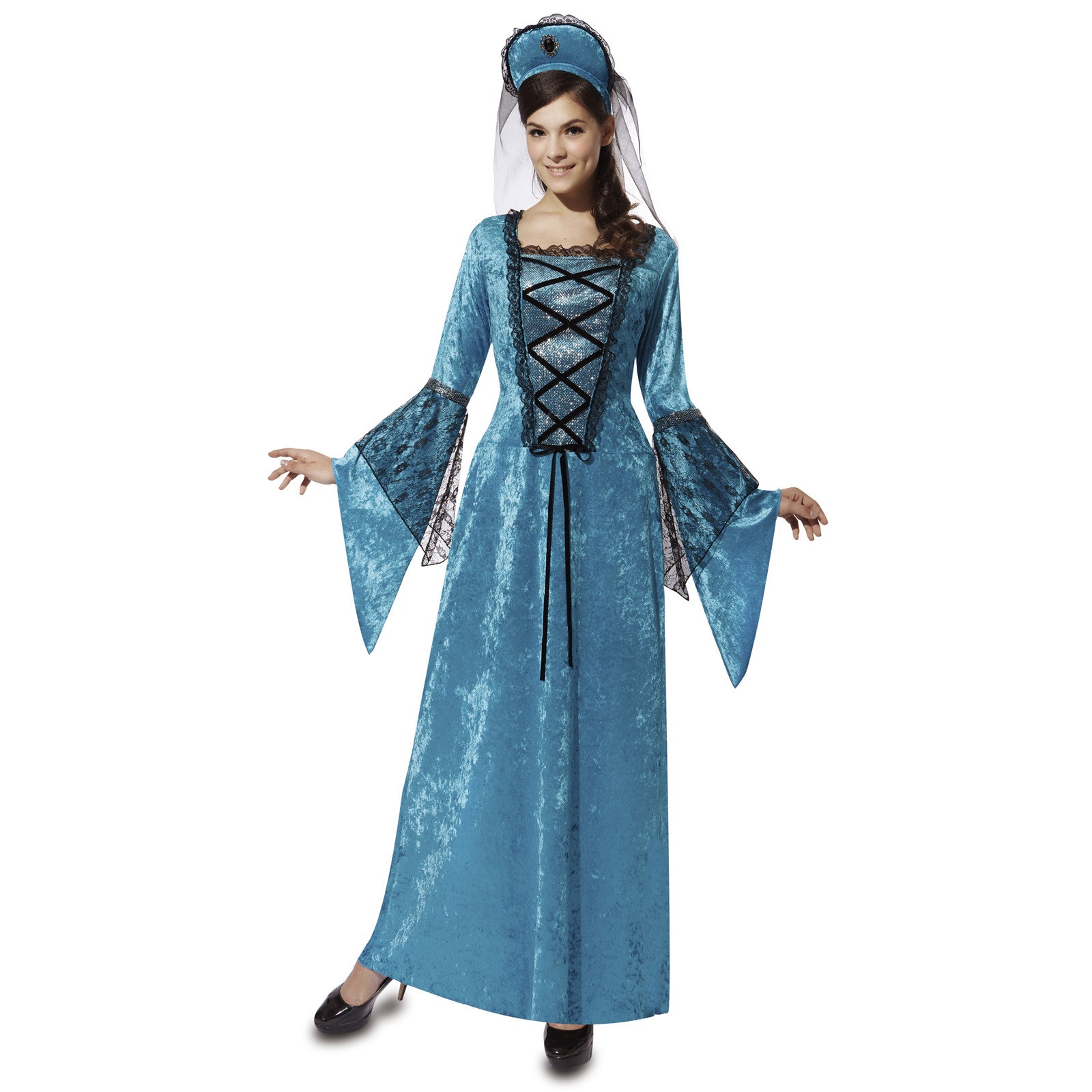 El disfraz de princesa medieval azul para mujer incluye vestido y tocado. Precioso disfraz de princesa Medieval. Excepcional vestido con el que irás fantástica en toda fiesta medieval a la que asistas.