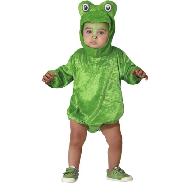 Con el disfraz de rana verde infantil tendrás el traje perfecto para disfrazar a tu bebé como este animal saltarín y será el niño o niña más simpáticos de la fiesta de disfraces.