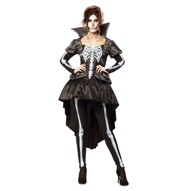 El disfraz de reina esqueleto para mujer incluye Vestido, pantalón, corona.