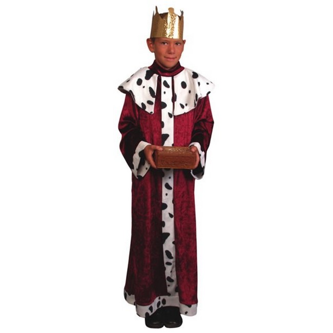 El disfraz de rey mago rojo incluye traje y corona.