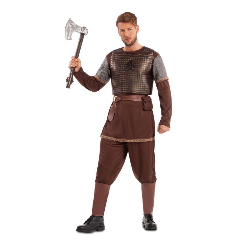 El disfraz de rey vikingo para hombre incluye armadura, chaqueta, pantalón, cinturón y cubrepiernas. Prepara tu Disfraz de Rey Vikingo para Hombre para cruzar los mares nórdicos en buscas de nuevas conquistas en los Carnavales y Fiestas Temáticas.