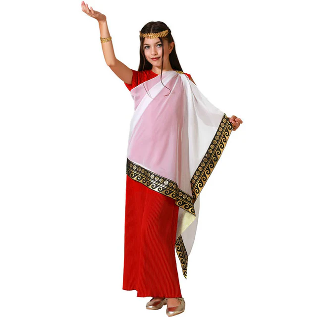 El disfraz de romana rojo para niña incluye túnica y manto. No incluye: pulsera y diadema. Con tu disfraz de romana, viajarás a una de las civilizaciones más antiguas.