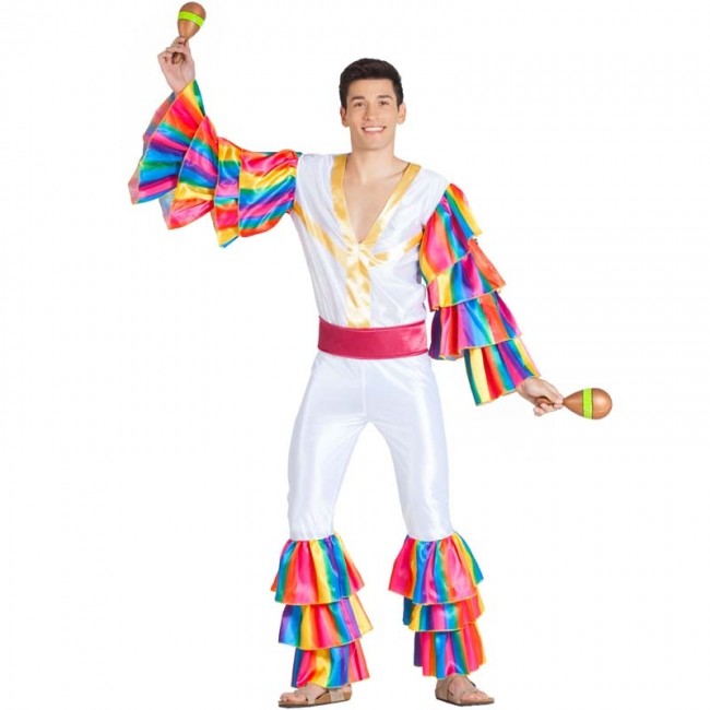El disfraz de rumbero de cuba para hombre incluye camisa con volantes, pantalón con volante y fajín. Pensado para que demuestres tus dotes artísticos, te ofrecemos este divertido disfraz de rumbero para adulto.