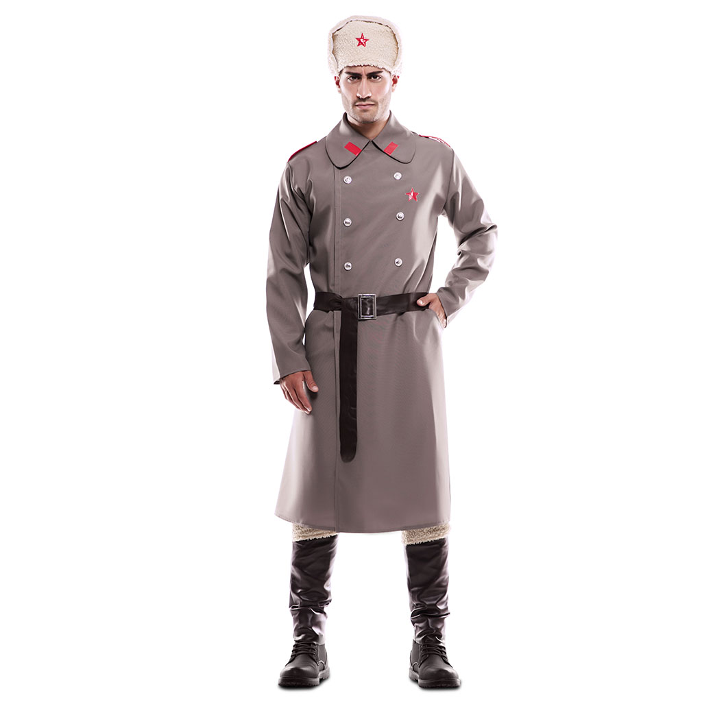 El disfraz de ruso para hombre incluye Chaqueta, cubrebotas, gorro. Alucinante disfraz de militar ruso para hombre con el que podrás sorprender a tus amigos y familiares, ya sea en despedidas, carnavales o cumpleaños temáticos.