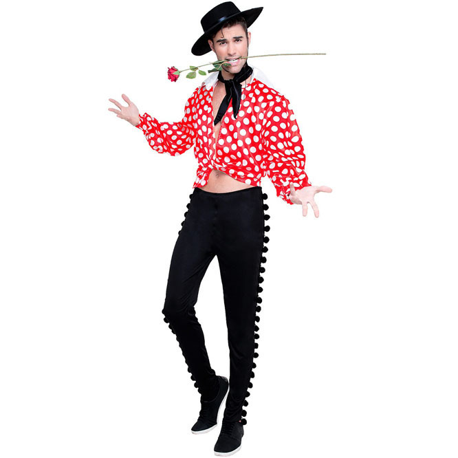 El disfraz de andaluz incluye camisa , pantalón y pañuelo. También sirve para disfraz de cordobés. Disfraz para cualquier fiesta andaluza. Muy adecuado para acompañar a las sevillanas.