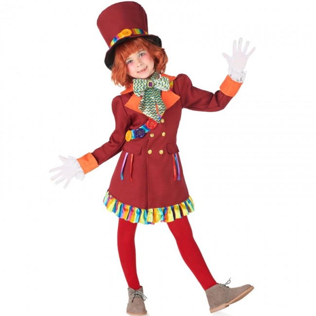 El disfraz de sombrerera loca para niña incluye Sombrero, Cuello, Pajarita, Chaqueta y Cinta Bandolera. Elige el disfraz personaje de dibujos o cuentos para vivir tu historia favorita o para los festivales escolares infantiles.