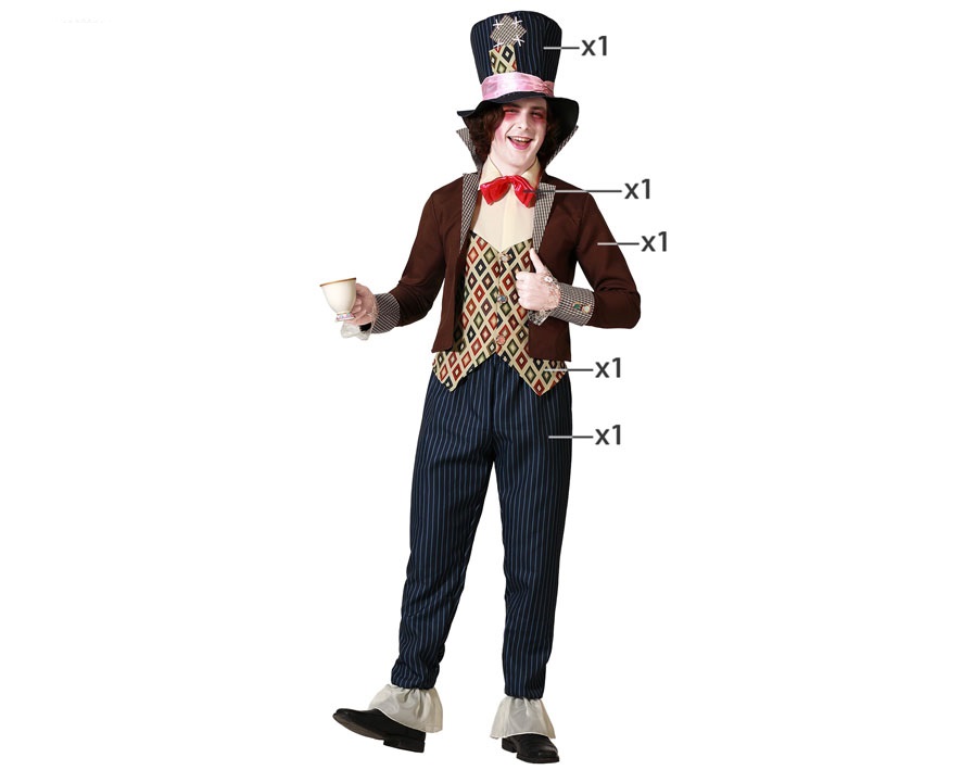 El disfraz de sombrerero loco para hombre incluye sombrero de copa, pajarita, chaqueta y pantalón largo. Este modelo esta inspirado en el personaje del sombrerero loco en el fantástico mundo de Alicia en el país de las maravillas con él sorprenderás en cualquier fiesta.