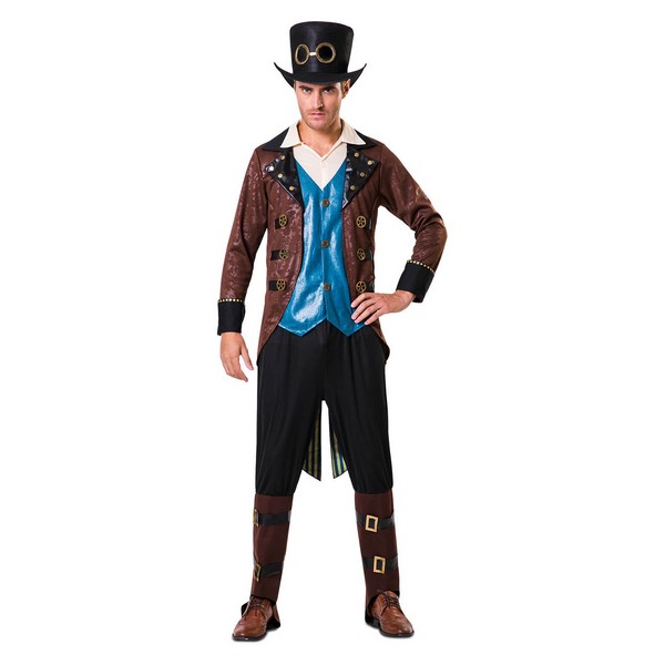 El disfraz de Steampunk para hombre incluye chaqueta con chaleco, pantalones con cubrebotas y sombrero. Disfraz de  Steampunk  para hombre para los mercados medievales. Los disfraces época recrean una época pasada a la que nos gusta viajar para lucir los mejores ropajes y dedicarnos al ocio. Disfruta de la fiesta medieval con tus amigos y vive la recreación histórica.