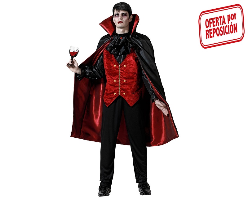 El disfraz de vampiro elegante para hbombre incluye capa con cuello alto, chaleco manga larga y pantalón largo. No incluye copa.