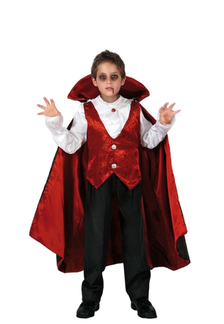 El disfraz de vampiro para niño incluye camisa con chaleco, pantalón y capa. Un distinguido disfraz con el que marcarás estilo.