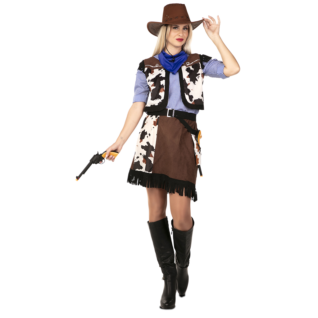 El disfraz de vaquera para mujer incluye Camisa con chaleco, falda, cunturón, pañuelo. Este disfraz para mujer de Vaquera, será el complemento perfecto para disfrazarte en Carnavales, fiestas temáticas, despedidas de soltera…