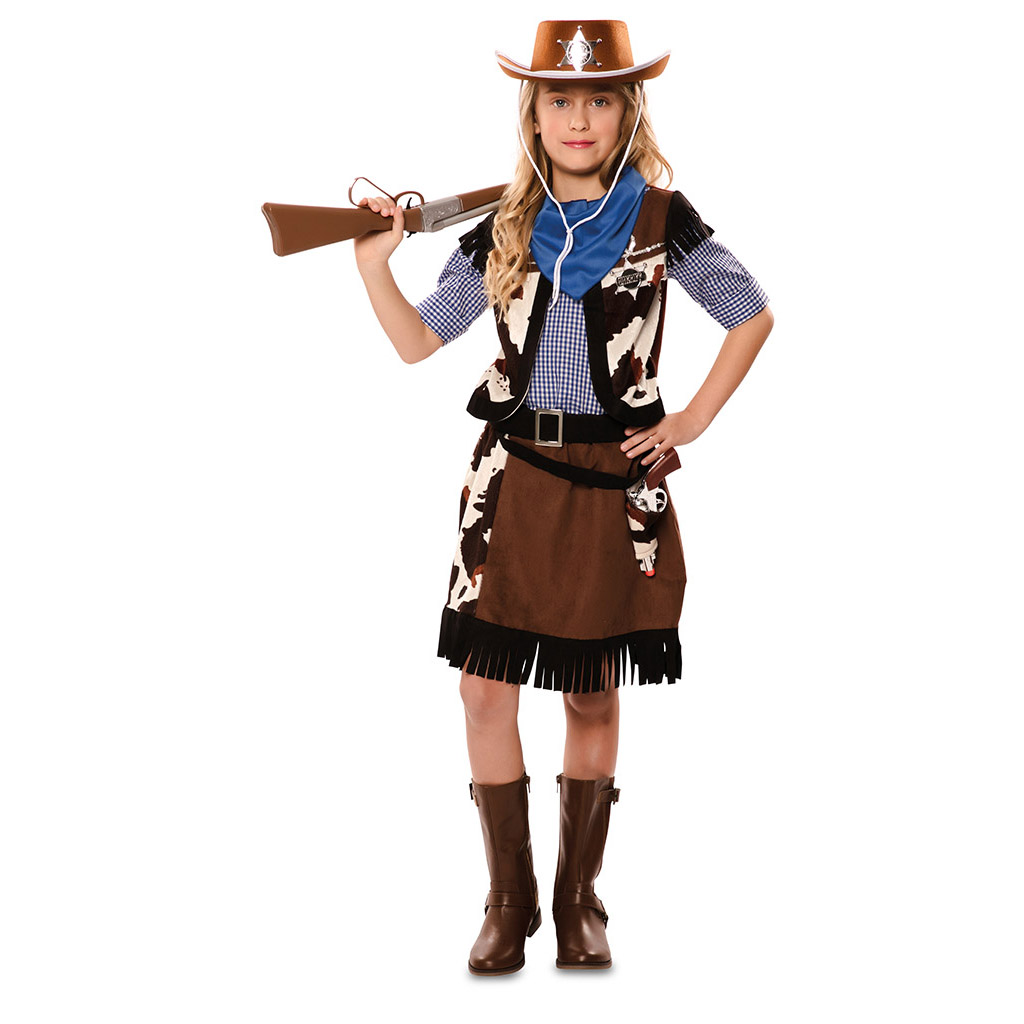 El disfraz de vaquera para niña incluye Camisa con chaleco, falda, cunturón, pañuelo. Con el disfraz de vaquera del salvaje oeste infantil tendrás el traje perfecto para disfrazar a tu hija como estos personajes típicos de las películas de indios y vaqueros del salvaje oeste americano, y será la niña más guapa de la fiesta de disfraces.