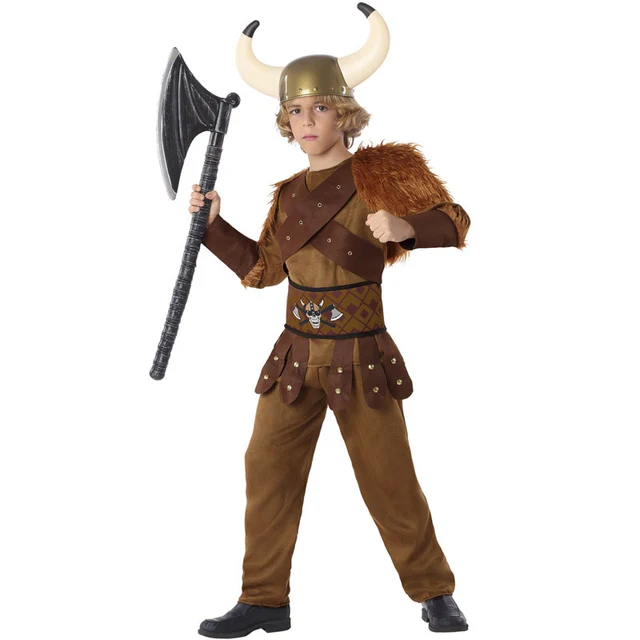 Disfraz talla infantil. Contenido del pack: capa, camiseta, dos tirantes, cinturón y patalón. No incluye: casco y hacha. Transfórmate en un auténtico vikingo con este increíble disfraz de niño vikinga lleno de detalles. Se compone de una capa que simula ser piel, dos correas para los hombros, un cinturón con flecos, una camiseta y un pantalón.