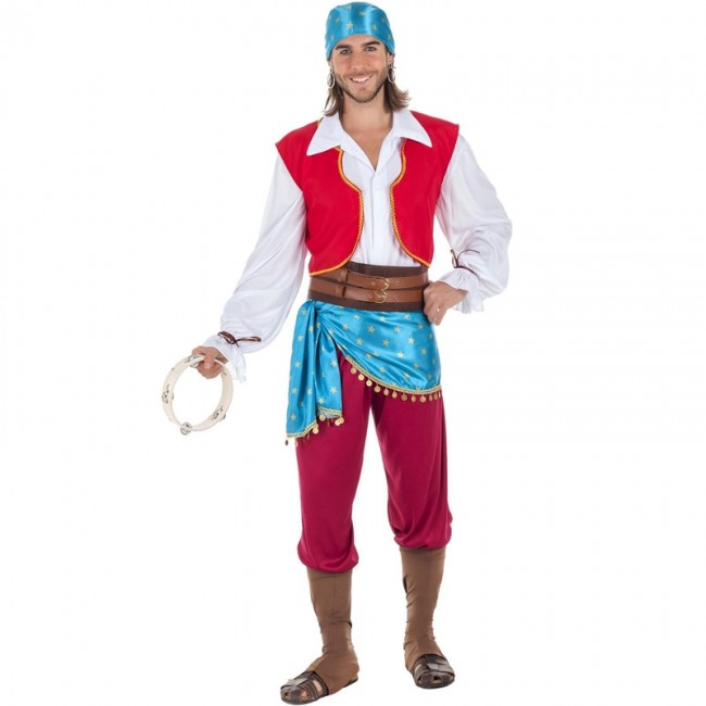 El disfraz de zíngaro adivino para hombre incluye Bandana,Blusa, Chaleco, Fajín, Faldón, Pantalón, Cubrebotas. Disfraz de zíngaro que te ayudará a sentir la musicalidad y el arte de los gitanos de Europa Central, siendo una propuesta perfecta para carnavales, despedidas y otros contextos festivos.