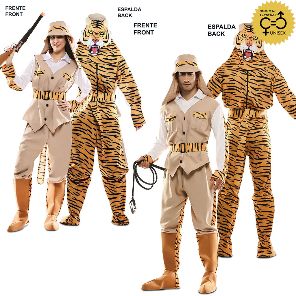 El disfraz doble fun! cazador-tigre unisex para adulto incluye Mono, cinturón, sombrero con máscara. Divertido disfraz double fun que permite convertirte a la vez en un Cazador y un tigre.