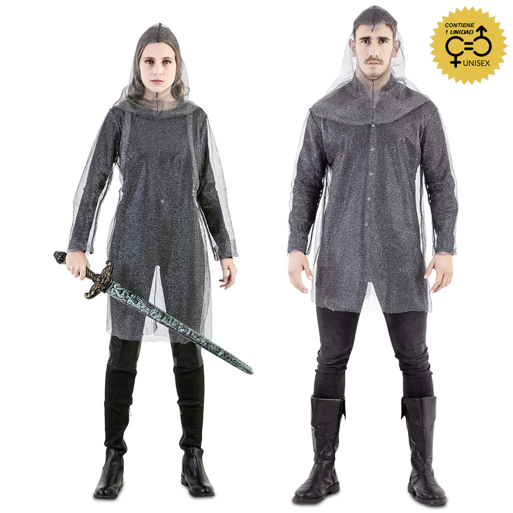 El disfraz malla armadura medieval unisex para adulto incluye Traje y capucha. Malla de Armadura Medieval para adulto para las fiestas medievales y fiestas de la historia.