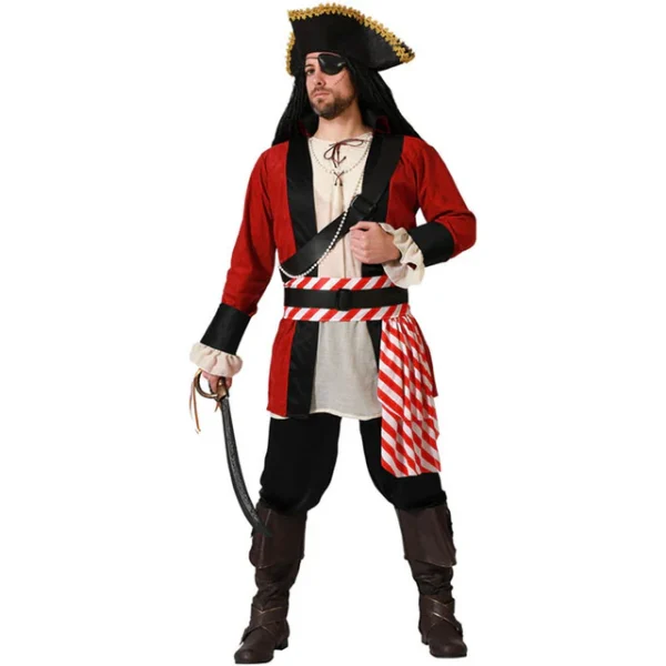 Disfraz para hombre talla adulto. Contenido: chaqueta con pieza delantera camisa, cinturón, sombrero.  Este disfraz para hombre de pirata con uniforme rojo es perfecto para todos aquellos que adoran disfrazarse y quieren convertirse en el centro de atención en cualquier evento.