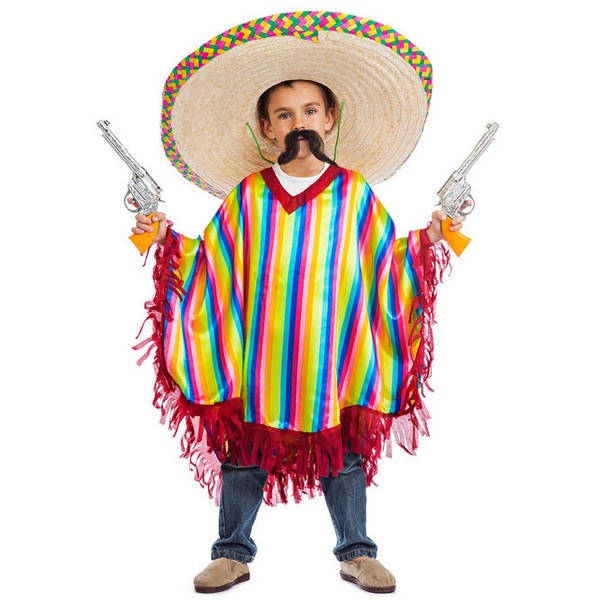 El disfraz de mejicano para niño incluye el poncho. México es uno de los países más grandes y poblados de Hispanoamérica, y por tanto un país también de grandes contrastes geográficos y culturales. Su diversidad de paisajes y rica cultura precolombina, hacen de Méjico uno de los países más atractivos para los visitantes españoles. ¿Quien no ha querido visitar y disfrutar de las maravillosas playas del Caribe mexicano?. La península de Yucatán, el desierto de Oaxaca, o los restos de los monumentos de la civilización maya hacen de Mexico un país lleno de misterios por descubrir.