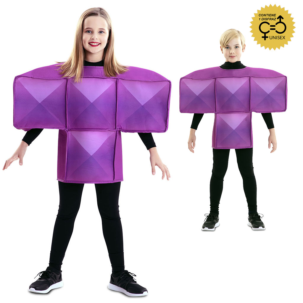 El disfraz de tetris púrpura unisex infantil incluye el traje. Divertido disfraz infantil imitando una pieza de Tetris de color púrpura para niños y niñas.