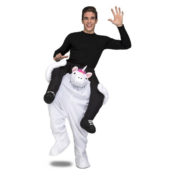El disfraz de unicornio a hombros incluye pantalones con personaje. Este exclusivo traje que servirá para hombre y mujer indistintamente imitando a una criatura fantástica para aventuras brillantes.